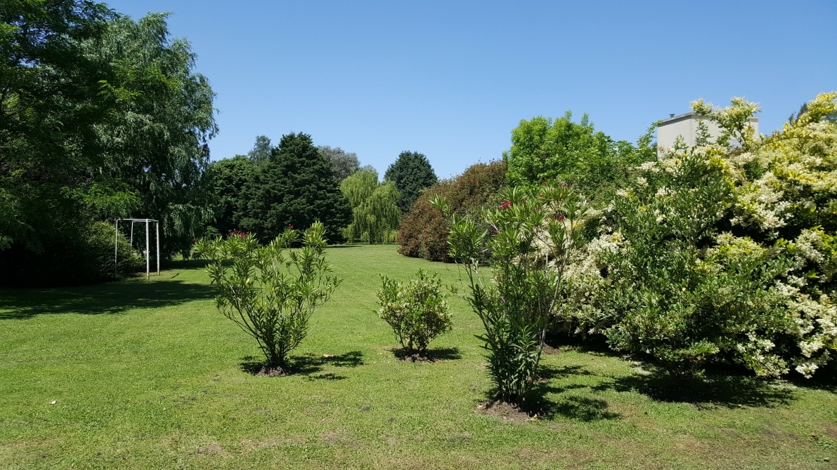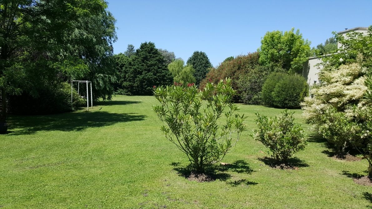 Exterior: Piscina de 8 x 4, preparada para sistema de calefacción solar o a gas, amplio parque forestado, con fondo de golf con 60 metros lineales de espacio libre forestado.