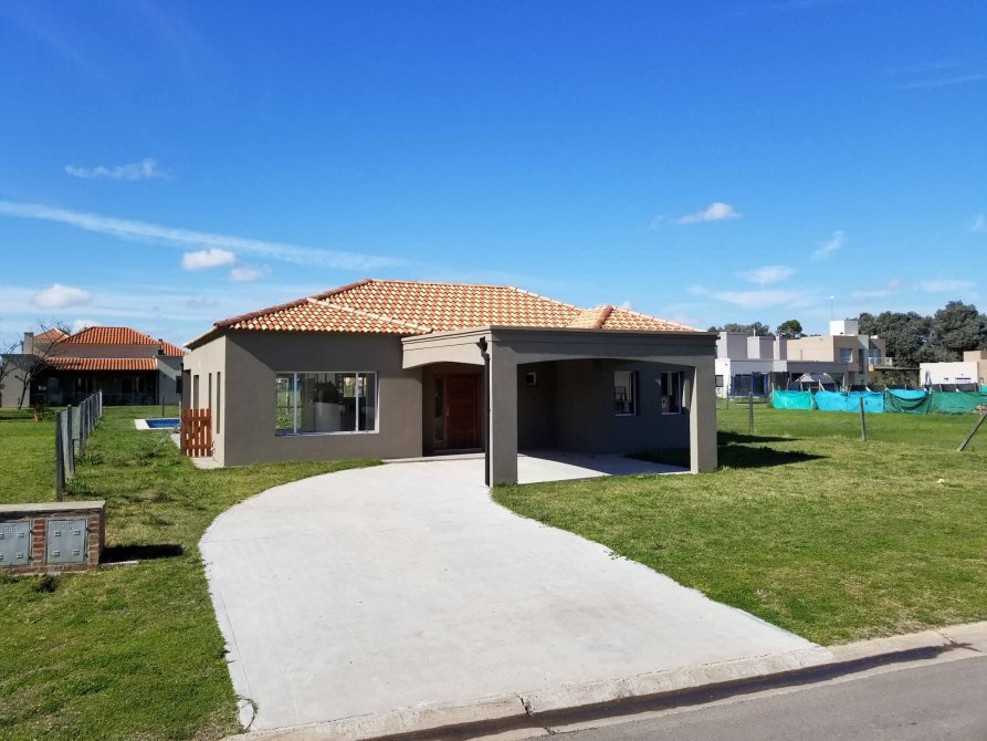 Moderna casa en el Barrio cerrado "Santa Juana" desarrollada en una planta de 180m2, sobre lote de 700 Mts. Consta de: