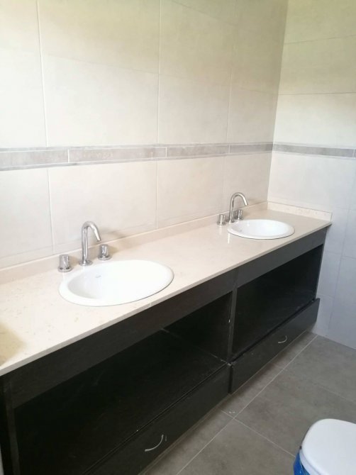 Dormitorio principal en suite con doble bacha y amplio vestidor de estantes a la vista