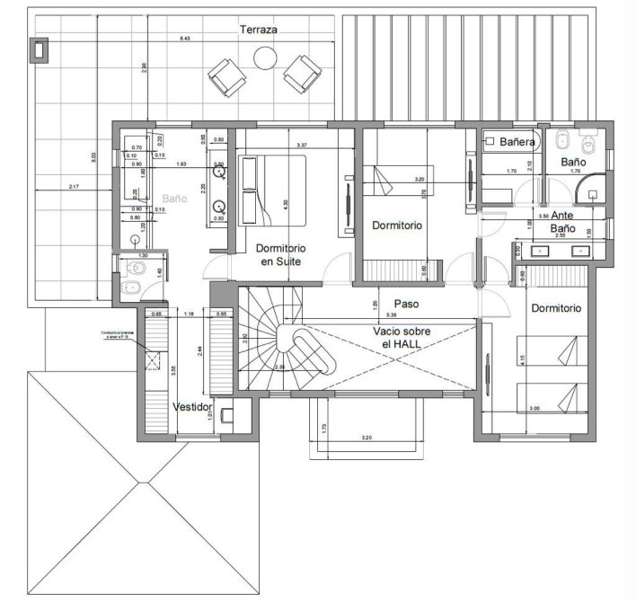 -Espacio vestidor con sector para maquillador. Conducto para arrojar la rapa sucia al lavadero.