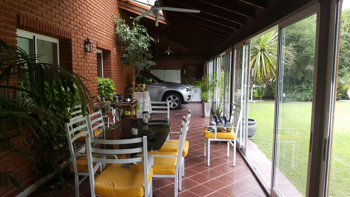 Excelente propiedad en dos plantas. En planta baja nos encontramos con un hall de recepcion , con paso a un amplio living con muy buena iluminacion, cocina con comedor diario, un baño de recepcion y un dormitorio o estudio. En planta alta dos dormitorios, un baño y un dormitorio en suite con gran vestidor y baño (todos con placard). En el exterior nos encontramos con un quincho cubierto (vidriado), un hermoso parque con piscina y jacuzzi, riego por aspersion, cochera cubierta para dos vehiculos. Con su fondo linda a un espacio verde muy hermoso.