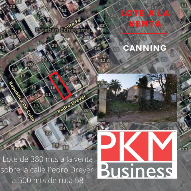En venta lote a 500mtrs de la ruta 58, sobre la Avenida Pedro Dreyer. El lote cuenta con 10 de frente por 38 de fondo. Excelente ubicación. ¡Consultanos!