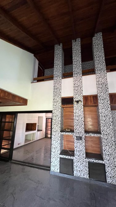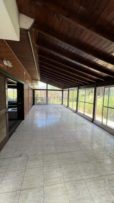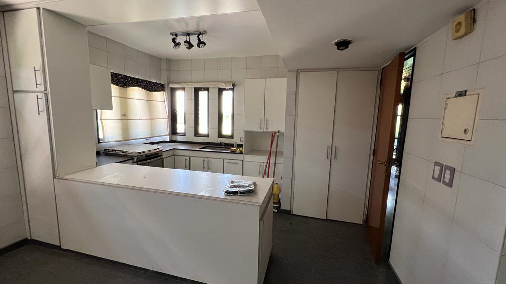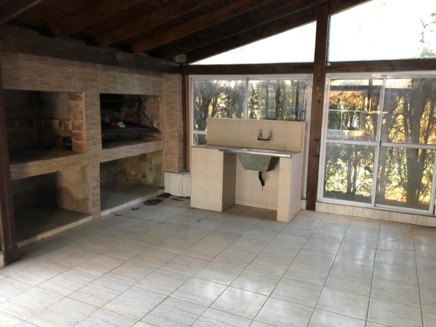 Quincho cubierto con parrilla interior, dependencia de servicio, baño y cocina.